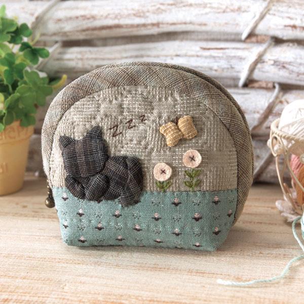 ほのぼのネコをモチーフにした、実用的な小物アイテムの展開です。技術レベルは初~中級者向け。※生地・色・柄等、キット内容は一部変更する場合があります。