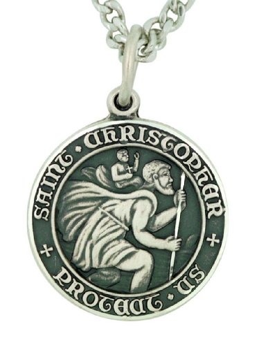 -. Title : Saint St Christopher Black Enamel 1 Inch Sterling Silver Surfer Protection Medal