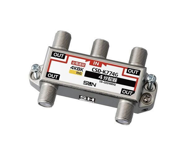 fk094igrjs全端子電流通過型の4分配器です サイズ 44×72×19mm 個装サイズ:3×6×17cm 重量 60g 個装重量:100g 製造国 日本 4K・8K衛星放送を含む全ての放送に対応 全端子電流通過型の4分配器です