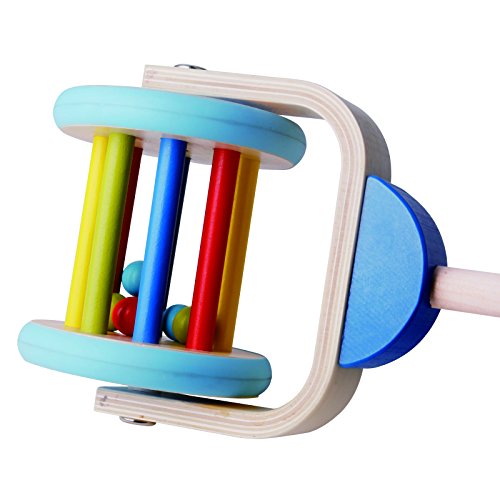 Kids can pretend to mow the lawn like a grown up, while the roller turns, the wooden ball inside hits the round sticks creating sound