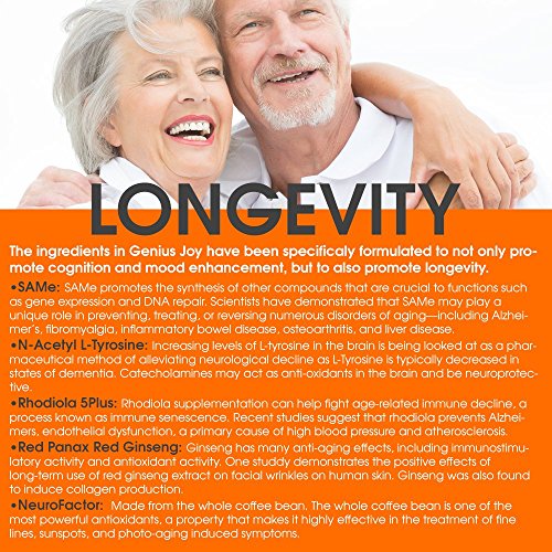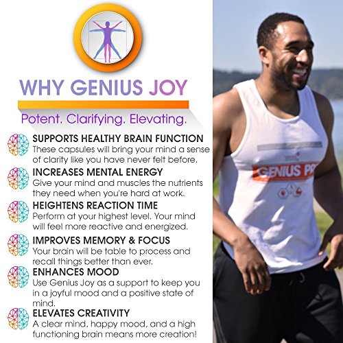 Life centers around one’s happiness. Remove all external factors one’s self worth and level of satisfaction universally centers around one thing, happiness or to take it even further… dopamine! Sure, you just got your secret crush at the gym’s phone number or you got that new promotion at work, your self-worth is through the roof and you’re extremely happy but when you break down the fundamental chemical process in your brain, these events simply triggered a natural boost of serotonin and ultimately more dopamine! It enables greater motivation, a better attention span more energy and just general better overall all state of wellbeing. You work harder, you’re in a better mood and overall you’re just a nicer person! But what about the flip side of that.. You get dumped! Or Fired! Dopamine levels go down. You may feel defeated, unmotivated or even worse, genuinely depressed. Depression is simply a function of seriously low dopamine and if it was a choice, wouldn’t you say no? With the proper mindset, you could learn from every failure and in sequence, never actually lose. With proper management and respect for serotonin levels as they relate to anxiety and general wellness, it becomes easier to turn losses into lessons and grow through experience! Genius Joy was formulated to be the natural cheat code. The head start to everyday success. It’s all about the right mindset! NEVER DWELL ON A LOSS. Genius Joy is the first of it’s kind! Every single ingredient is backed by research to serve a true purpose make a lasting difference. It’s an alternative to stimulant based prescriptions that doctor’s pass out like candy nowadays! Get nootropic performance, stress relief and natural anxiety relief instead of turning to antidepressants and anti anxiety medications! Be a Better You. Always. INGREDIENTS