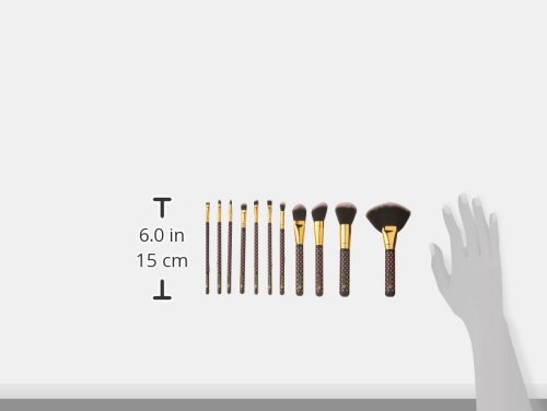 This adorable polka-dotted BH cosmetics pink-a-dot 11 piece brush set includes deluxe fan brush, powder brush, angled blush brush, classic foundation brush, tapered shadow blending brush, classic shadow brush, flat eyeliner brush, angled shadow brush, small smudge brush, tapered eyeliner brush and Lip brush. It comes with its own adorable matching cylindrical hard case that snaps up for quick travel.Feature
