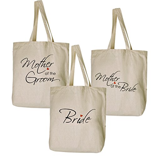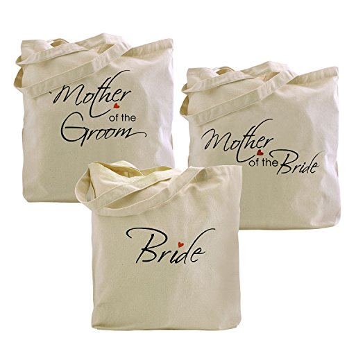 - Wedding Gifts Tote Bags Set of 3( 1pcs Bride Tote Bag +1pcs Mother of the Bride Tote Bag + 1pcs Mother of the Groom Tote Bag)