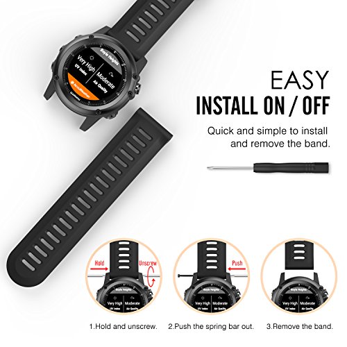 Garmin Fenix 3 Watch band, MoKo Soft Silicone Replacement Watch Band for Garmin Fenix 3 / Fenix 3 HR / Fenix 5X Smart Watch - BLACK & GREEN