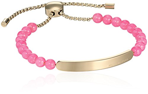 -. Feature : Adjustable beaded bracelet with center plaque featuring slider clasp closure / Imported
