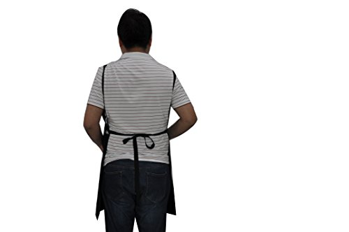 - ALL DAY COMFORT + CUSTOMIZED FIT: Prevent neck pain with our cross back strap design. Full coverage bib apron is 27 inches wide x 34 inches tall for unisex sizing. Grommets + long straps + buckle allow for a range of adjustments (up to men's 50 inch waist).