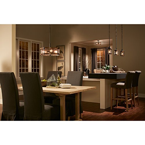 Distressed black and wood semi-flush mount light from the Barrington collection has a rustic feel