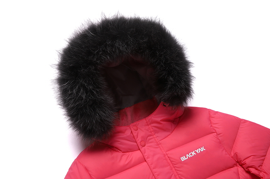 후드 부위에 컬러 염색 여우털을 적용하여 고급스러움을 보다 강화함.