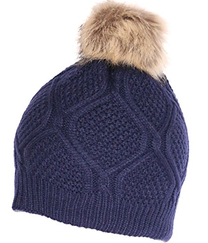 -. Title : KMystic Solid Thick Beanie Hat with Fur Pom