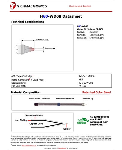 Thermaltronics H60-WD08 Chisel 30deg 1.0mm (0.04") interchangeable for Hakko T31-03WD08