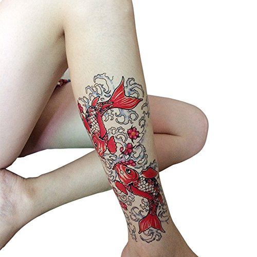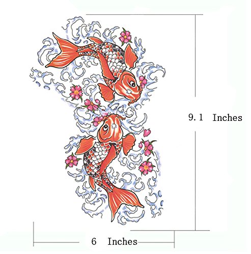 TAFLY Koi Fish Temporary Tattoos Red Large 6 x 9.1 Inches Colorful Transfer Tattoo Stickers for Men & Women 2 Sheets