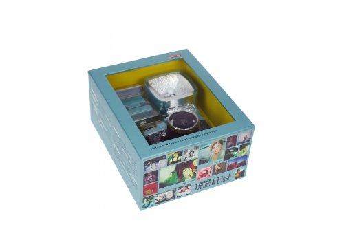 Package includes Diana Mini Camera (35mm format), Diana F+ electronic flash, hotshoe adaptor, color gels and Shoot Forever book.