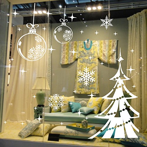 Dnven (48"w X 32"h) Ornaments Christmas Shining Balls Trees with Snowflakes Decorative Wall Stickers Wall Decals Door Window Stickers Glass Decals for Kids Rooms Nursery Living Rooms Bedrooms