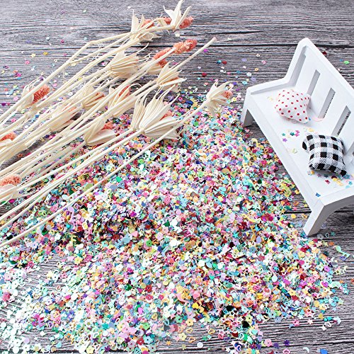 Multi-shapes: 9 different shapes including stars, hearts, flowers, hollow stars, hollow flowers, moon, butterfly, music, and round, meet your decoration needs well. Perfect for Slime : It will make Slime "crunchy". Wide application: these glitter confetti is suitable for art craft project, such as table and party decoration, also use for nail arts, body and facial make-up, etc. There is a large assortment of colors. Yellow, orange, lime green, pale green, light pink, hot pink, lavender, red, peach, paisley blue, light blue, and an opal white color. Teenitor Brand Products. Fast Shipping by FBA.Feature