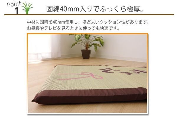 【素材】側地=い草 ※普通織 中材=固わた40mm ヘリ=綿100%(返し二方)