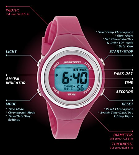 Women's Watches by Sportech - Pink Digital Water Resistant Sport Watch - Make Every Second Count - SP10716