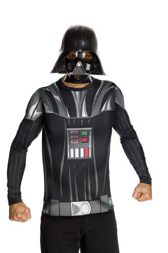 -. Binding : Apparel -. Brand : Rubie's -. ClothingSize : Medium 40-42, Large 42-44 and XL 44-46 chest size -. Color : Black -. Department : costumes -. Feature : Costume set includes long sleeve printed top with an attached cape, and a darth vader mask / Because you wear with your own pants, this costume is easy and comfortable to wear / Officially licensed star wars costume created in partnership with lucas films / Available in men's sizes medium (jacket 38 to 40), large (jacket 42 to 44), and xl (jacket 44 to 46) / Rubies costume has been a world leader in dress-up fun for all ages since 1950 -. Genre : TV/Movie Characters -. IsAdultProduct : 0 -. Label : Rubies Costumes - Apparel -. Manufacturer : Rubies Costumes - Apparel -. MPN : R880678 -. NumberOfItems : 1 -. PackageQuantity : 1 -. PartNumber : R880678 -. ProductGroup : Apparel -. ProductTypeName : ADULT_COSTUME -. Publisher : Rubies Costumes - Apparel -. Size : X-Large -. Studio : Rubies Costumes - Apparel -. Title : Star Wars Adult Darth Vader Costume Kit