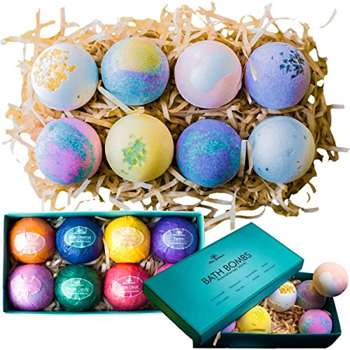 Each bath bomb kit comes with eight distinctive bath bombs that vary in color and scent to provide a different experience each time.