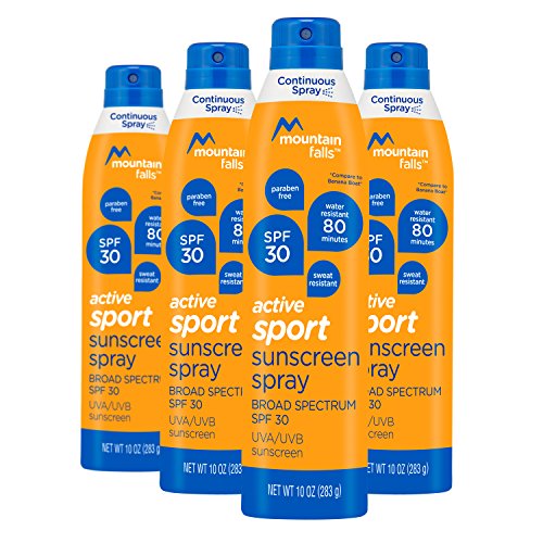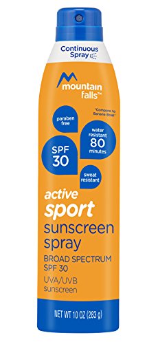 Product Description Mountain Falls Sport Sunscreen Spray SPF 30 delivers quick and easy application with a lightweight, continuous spray that goes on at any angle. Dermatologist tested and Paraben-free, this water-resistant formula won't run when you sweat. 0