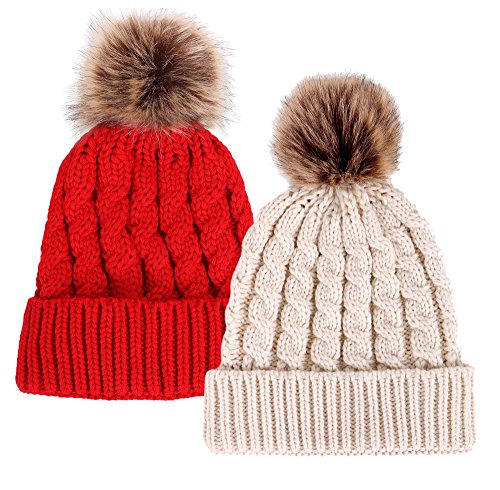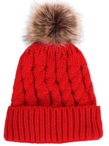 Simplicity Men / Women's Winter Hand Knit Faux Fur Pompoms Beanie Hat