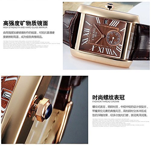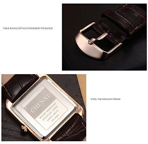-. Feature : Water resistant up to 10 ATM (Suitable for everyday use. Splash/rain resistant.NOT suitable for diving, swimming, snorkeling, water-related work) / Chenxi Brand, since 1994,famous for it's good quality and reasonable P.R.Ices.Genuine Brand,new with tag,original package with "Chenxi" logo. / Imported Japanese quartz movement,precise time display.Top quality steel and PU material,wear comfortable. / Gold case,Brown dial with roman numerals hour-markers,show special gentleman taste. / Best choice as a present for friends and family and self.
