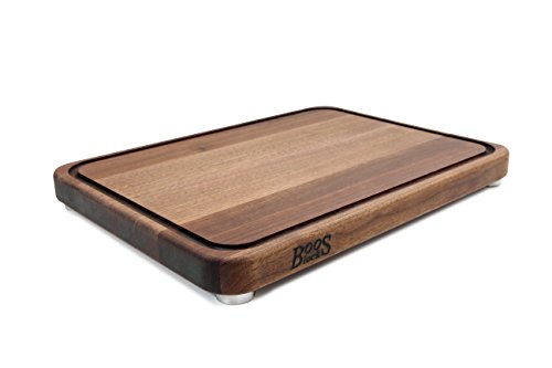 John Boos Tenmoku Cutting Board with Juice Groove and Stainless Steel Feet, 20 by 15 by 1.5", Walnut