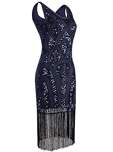 Vijiv 1920s Vintage Inspired Sequin Embellished Fringe Prom Gatsby Flapper Dress