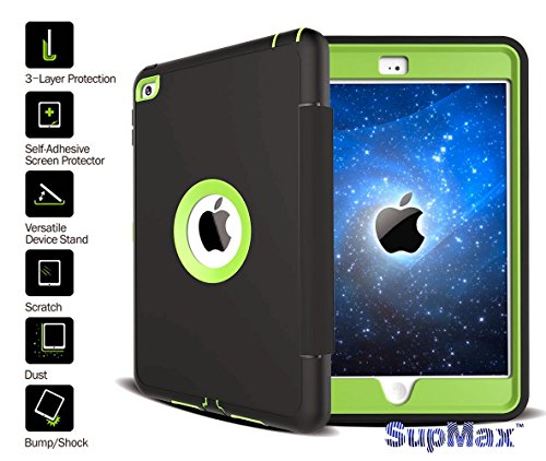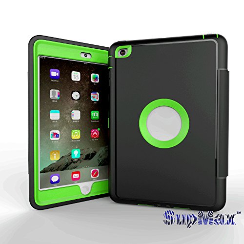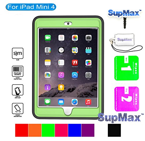 iPad Mini 4 Case,iPad Mini 4 Cover,SupMax™Anti-stain TPU+PC Kids Proof Skidproof Detachable Cover Trifold With Stand [Brand Gifts] Auto Wake Up/sleep for Apple iPad Mini 4 (Black green)