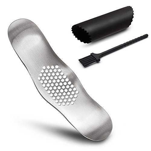 BestCook Garlic Press Chopper With Silicone Peeler & Cleaning Brush, Stainless Steel Garlic Rocker Crusher Mincer Press.
