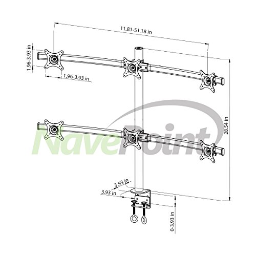 -. Title : NavePoint Hex LCD Monitor Curved Mount Stand C-Clamp Adjustable Holds 6 Monitors Up To 26-Inches Black