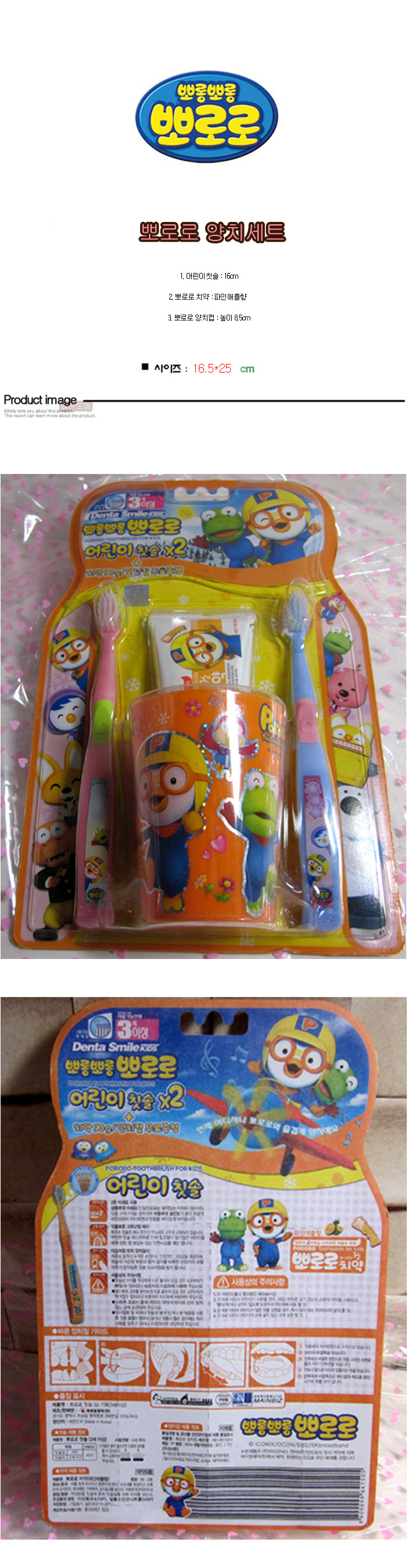 【ICONIX韓国]ポロロ韓国歯磨きセット - 歯ブラシ16センチメートル×2、歯磨き粉×1、×1歯ブラシカップ