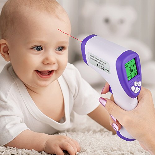 -. Feature : ❤SAFE, RELIABLE AND ACCURATE - FDA Approved and clinically designed specifically for children and extensively tested by the medical community. We have calibrated the instant-read thermometer to ensure reliable and accurate results within one second. The results give consistent measurements with accuracy of ± 0.2℃ (0.4℉) in body mode and ± 1.0℃ (1.8℉) in surface mode / ❤NON CONTACT DESIGN - Never worry about disturbing a sleeping baby again. Our unique infrared technology prevents contamination and is more sanitary than other brands. Can accurately detected the temperature within a distance of 5cm (2 inches). This medical grade portable thermometer can be used by adults and children alike / ❤EASY TO USE - Simply "Point and Click" to obtain an accurate measurement (°C/°F) in One Second. Large LCD Screen changes colors among Green, Orange, Red (FEVER ALARM) based on normal, slight fever, fever, ensuring easy reading / ❤RELIABLE AND ACCURATE - Clinically tested and proven to be reliable and accurate when used in accordance to instructions / ❤UNDISTURBING - Our non-contact method of taking a temperature is instant, free of discomfort, mute mode of digital thermometer allows for operation without disturbing the patient's sleep