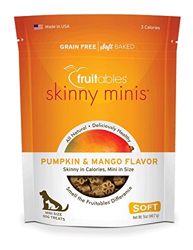 Skinny in calories, Mini in size. These fashionably delicious chewy dog treats have an amazing aroma and taste, and are the perfect size for small dogs or training. Now you can treat your best friend to a naturally sweet and juicy warm summer afternoon experience any time and anywhere! using fresh-packed pumpkin or sweet potato as the First ingredient, fruitables skinny minis are gluten free and only 2 calories each. Whether you are showing your special pet affection or rewarding them, These oh-so-cute flower shaped treats are irresistible. In addition fruitables skinny minis are made in the USA. This is a 2 pack.Feature