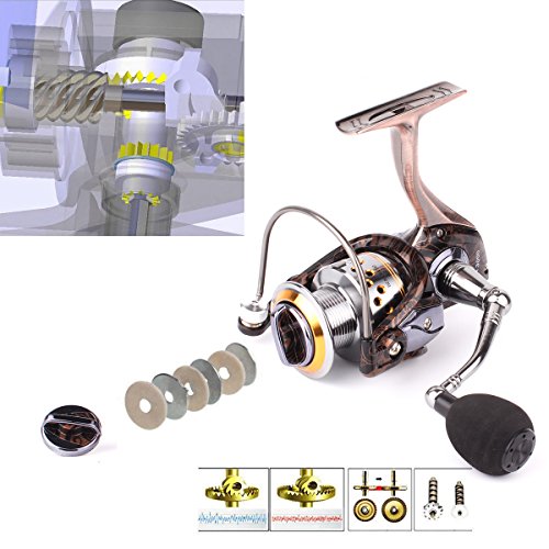 -. Feature : Metal Body:most part of body is made of Metal alloy,lightweight and durable. / Fully Adjustable Cast Control with Sound.S-curve Oscillation System for Very Good Line Winding .Aluminum Spool with High-tensile Gear. / The Fishing Reels Spinning Freshwater Saltwater with 5.5:1/4.7:1 Gear Ratio 13+1BB ,CNC Machine Cut Metal Collapsible Handle, Left/right Interchangeable . / 13+1BB no clearance bearings and one quick-set anti-reverse roller bearing use in spinning reels saltwater. the super bearing system, a solid reel shaft, when the line is smooth, feel is lightsome. Built-in precision bearing line spooler, full metal trio high speed saltwater fishing reels, discharge power outlet smooth degree of increase of 50% / Fit all saltwater fishing spinning reel and freshwater fishing reels, Spinning Reel & Spin Rods Combos than Baitcasting Fishing Reel & Casting Rods Combos use more flexible, suitable for position more widely, Created multiple actions for fishing Trout, Bass, Panfish, and even heavier rods for fishing larger fish such as Catfish or Salmon