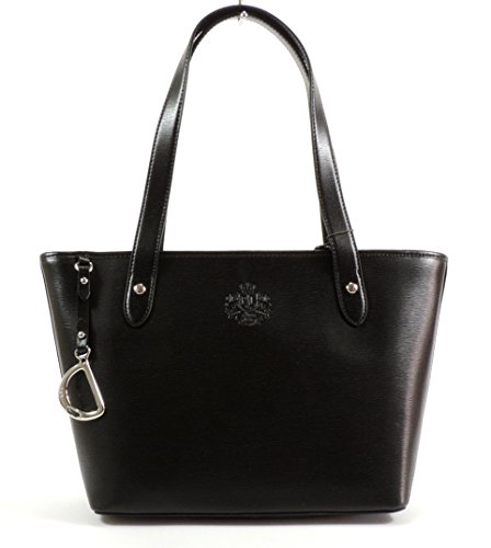 -. Brand : RALPH LAUREN -. Department : womens -. Feature : Embossed leather with silver hardware / 15 (top), 11" (bottom) L X 9.5" H X 4.25"D / 8.5" strap drop / Zip-top closure / Monogram interior features zip, cellphone and multi-function pockets -. ProductGroup : Shoes -. ProductTypeName : HANDBAG -. Title : LAUREN by Ralph Lauren Sloan Street Shopper (Black)