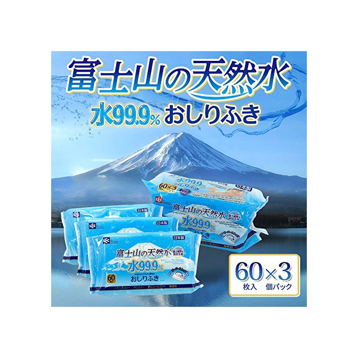 원본상품명: 富士山の天然水 水99.9% おしりふき 60枚入×3個 (富士?野工場 限定生産)