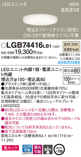 ●寸法(mm):埋込穴φ100・埋込高80