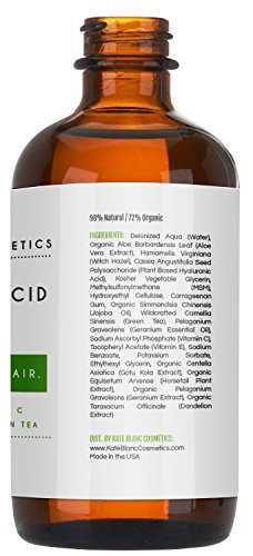 -. Feature : SMOOTHER SKIN - Kate Blanc's natural hyaluronic acid serum easily absorbs into your skin with no greasy or sticky residue, leaving skin silky soft and smooth. It also has a fabulous citrus smell. / REDUCE ACNE, BLEMISHES - Hyaluronic acid reduce acne and blemishes by drawing in moisture and forms a hydrating barrier. / ANTI WRINKLE & ANTI AGING - This serum plumps and fills in fine lines and wrinkles to reduce harsh texture and leave your face smoother / NATURAL & ORGANIC INGREDIENTS: no parabens, dyes or fragrances; vegan & cruelty-free; made in USA / 100% GUARANTEE AND ONE YEAR WARRANTY - We aim to offer the highest quality and most authentic products. We guarantee your satisfaction. If you are not satisfied with your purchase, please return it for a FULL REFUND within 365 days. Add to Cart.