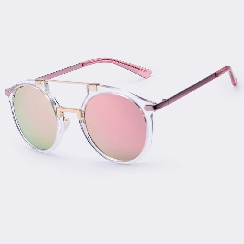 Sunglasses Color C02:Clear frame !#!amp!*! Pink mirror lens