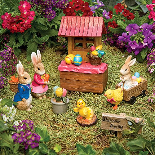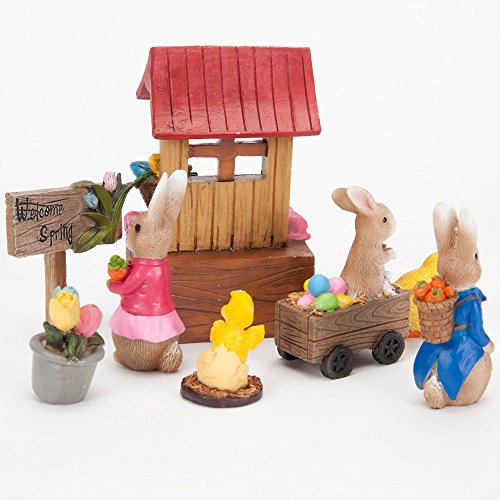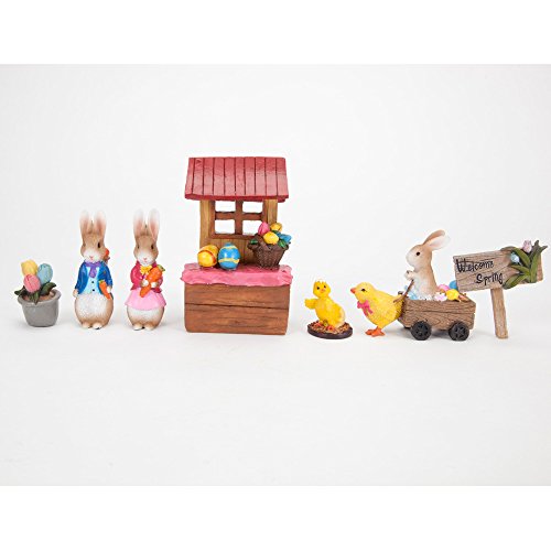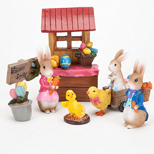 Bits and Pieces - Seven Piece (7) Easter Figurines Set - Holiday Fairy Garden Centerpiece Ornaments Made of Polyresin and Hand Painted