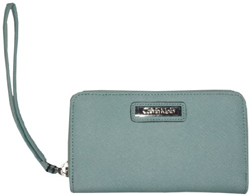 Calvin Klein Zip Around Saffiano Leather Wristlet Wallet Mint