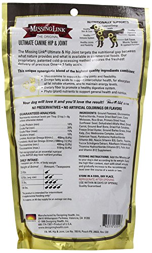 Fur kiddo not getting around like he or she used to? Add a daily helping of The Missing Link Original Superfood Hip & Joint formula to your pet's food. This powerful, powdered superfood supplement is chock full of joint and bone health supporting glucosamine and balanced Omega 3 and 6 fatty acids, as well as dietary fiber and phytonutrients to support your pet's digestive system and overall health and happiness. Add a spoonful to your fur kid's bowl and get ready to run … or at least go for a really long walk.