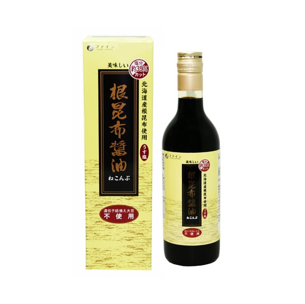 | 本商品は一般の醤油に比べ、塩分を39%カット!北海道産根昆布の風味豊かな味わいで美味しくお召し上がりいただけます。また、カリウム、ヨウ素を多く含んでいます。 |