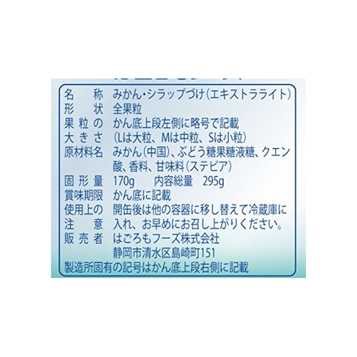 원본상품명: はごろも 甘みあっさりみかん 295g×4個 (4071)