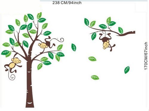 - Title : Hunnt® Large Size Funny Monkey Forest Green Gig Tree Vinly PVC Home Decal Decor Wall Sticker Removable Wall Decal for Nursery Boys and Girls Children's Bedroom