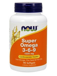 Now Super Omega 3-6-9 is a blend of Fish, Borage and Organic Flax Seed Oils. NOW Foods Super Omega 3-6-9 is a combination of well-known nutritional oils that provides a unique balance of Omega-3 and Omega-6 Essential Fatty Acids plus Omega-9, a non-essential, but beneficial fatty acid. The Omega-3's, Alpha Linolenic Acid, EPA and DHA, and the Omega-6, GLA, are necessary for the maintenance of cardiovascular, nervous system and skin health. Oleic Acid, an Omega-9, has also been shown to promote a healthy vascular system.Feature
