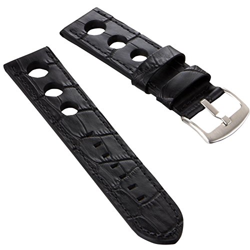 -. Title : Geckota 本革 レザー アリゲーター型押し U-Boat スポーツ ラリー/レーシングウォッチスタイル 穴開き 時計替えベルト ステッチ仕上げ 時計バンド ストラップ ブラック&ブラック 22mm
