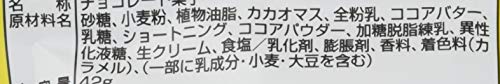 原材料:砂糖、小麦粉、植物油脂、カカオマス、全粉乳、ココアバター、乳糖、ショートニング、ココアパウダー、加糖脱脂練乳、異性化液糖、生クリーム、食塩/乳化剤、膨張剤、香料、着色料(カラメル)