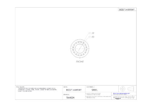 Timken 07100 Tapered Roller Bearing Inner Race Assembly Cone, Steel, Inch, 1.0000" Inner Diameter, 0.561" Cone Width