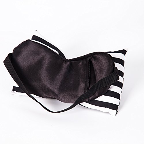 - The non-plastic elastic strap will stay at the back of your head and will not mess up your hair when you take it off. You can enjoy a total blackout to sleep tight, to relax, or to have a rest while traveling, e.g. on airplanes or in trains, during mediation sessions. Pamper your tired eyes, soothe headaches, and minimize puffiness with the additional cooling pad.